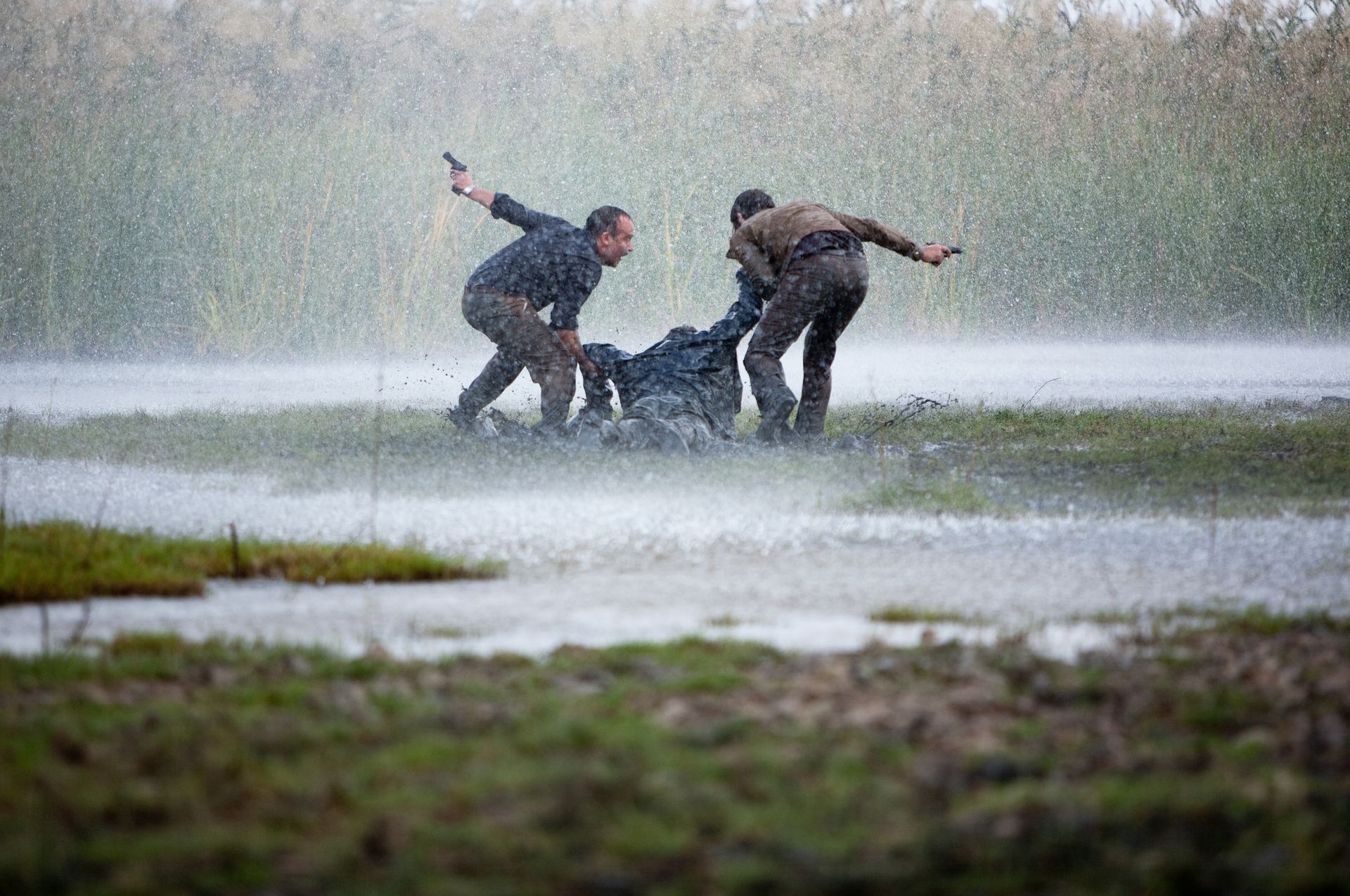 «La isla mínima» es un thriller que no se recrea con la partes más oscuras y sangrientas, pero que tampoco rehúye de las sombras, en las que se adentra con calma y con precisión, evitando el sensacionalismo pero sin ahorrarle al espectador esos momentos de crudeza que la historia necesita. La distancia que parece tomar de los hechos sobre los que se cimienta la historia, le da un aire de pretendida frialdad, necesaria para relatar los hechos huyendo de juicios prefabricados. Esto es lo que nos permite apreciar las escalas de grises con las que están dibujados los protagonistas de las distintas tramas.